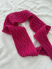 This small and elegant scarf is worked in a delicate cable pattern in one piece.