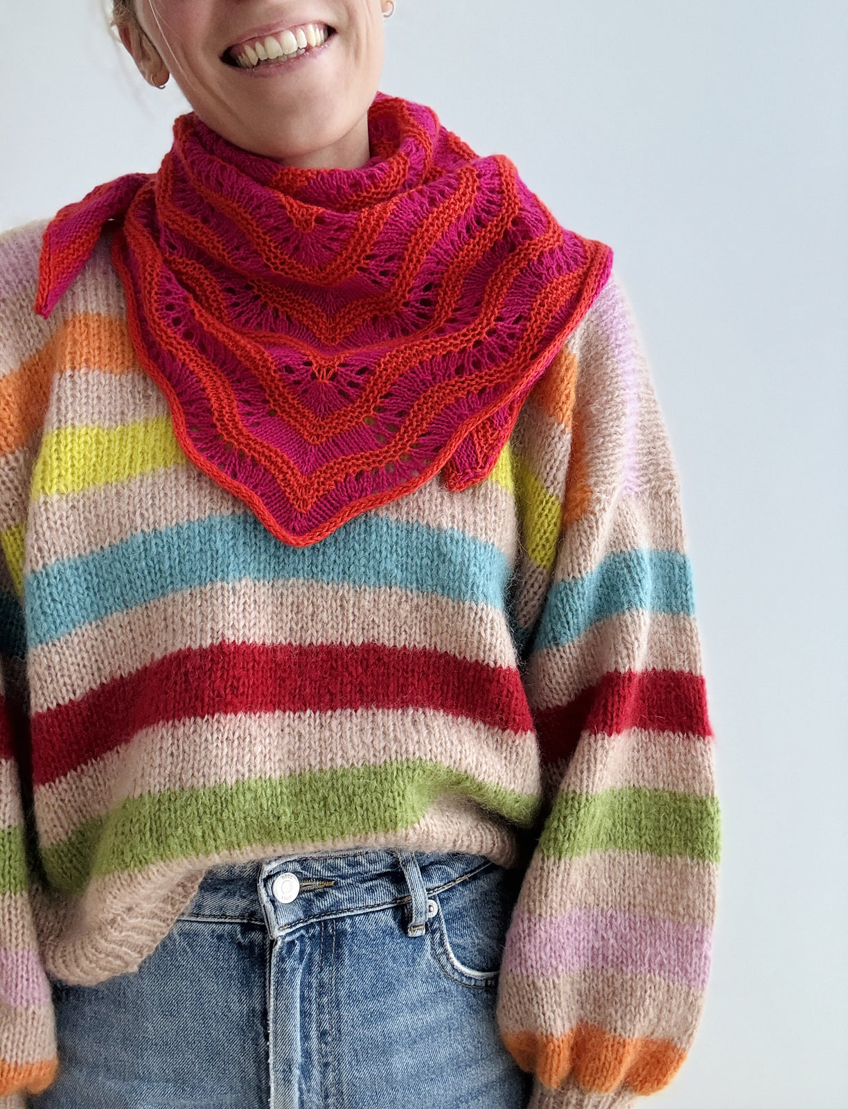 A small triangular scarf with an eye-catching wave-lace pattern and I-cord edging.