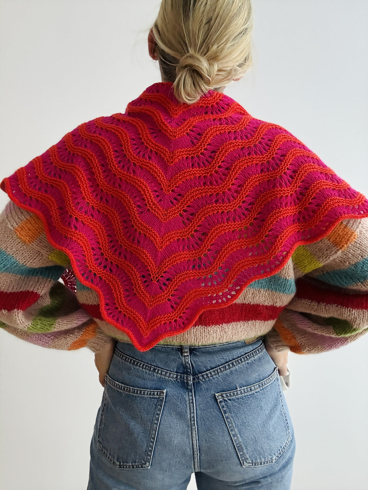 Yarn: Cardiff Cashmere Classic (100% Cashmere; 112 m per 25 g/ skein) in colorway SAKURA and HERMES, 1 ball each.The pattern is available in English and German on Ravelry.